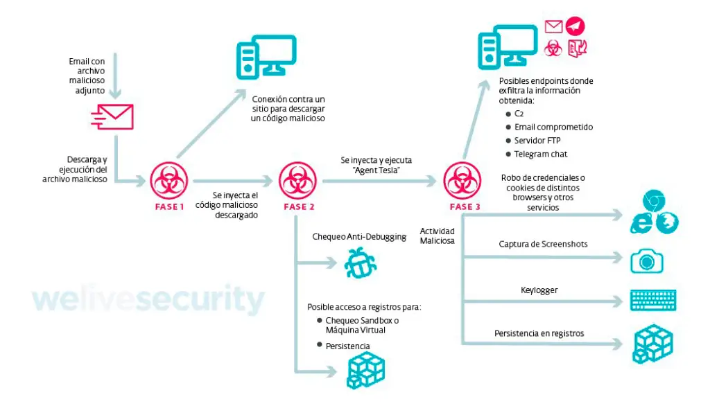 Una de las características más preocupantes del malware AgentTesla es su capacidad para exfiltrar los datos robados de manera sigilosa, sin alertar al usuario o a los sistemas de seguridad. Esto le permite a los atacantes llevar a cabo sus actividades maliciosas sin ser detectados durante largos periodos de tiempo.