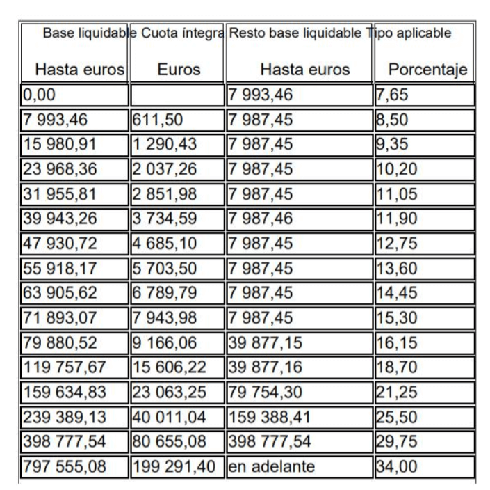| Base Imponible (€) | Tipo Impositivo (%) |