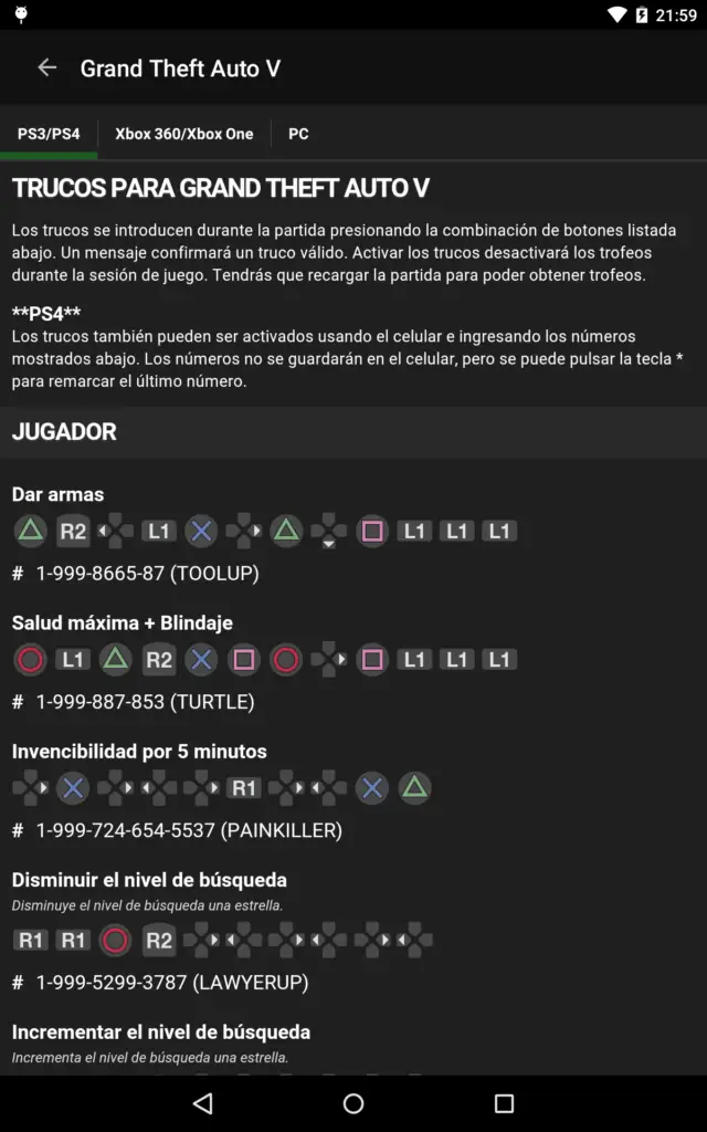 Otro articulo de ayuda:- Verifica la lista de trucos disponibles para tu versión del juego.