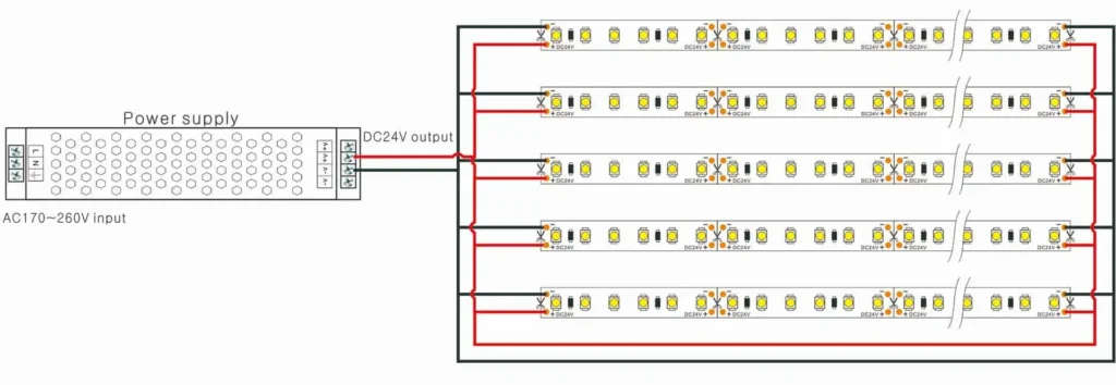 Además, considera la longitud y la potencia de la tira LED. Algunas tiras son más eficientes que otras y pueden requerir diferentes fuentes de alimentación. Es recomendable calcular la cantidad de tiras que necesitas y cómo conectar tiras LED en función del espacio disponible y el nivel de iluminación deseado. Ten en cuenta que, al conectar tiras de LED en serie, debes asegurarte de no exceder la capacidad del transformador.