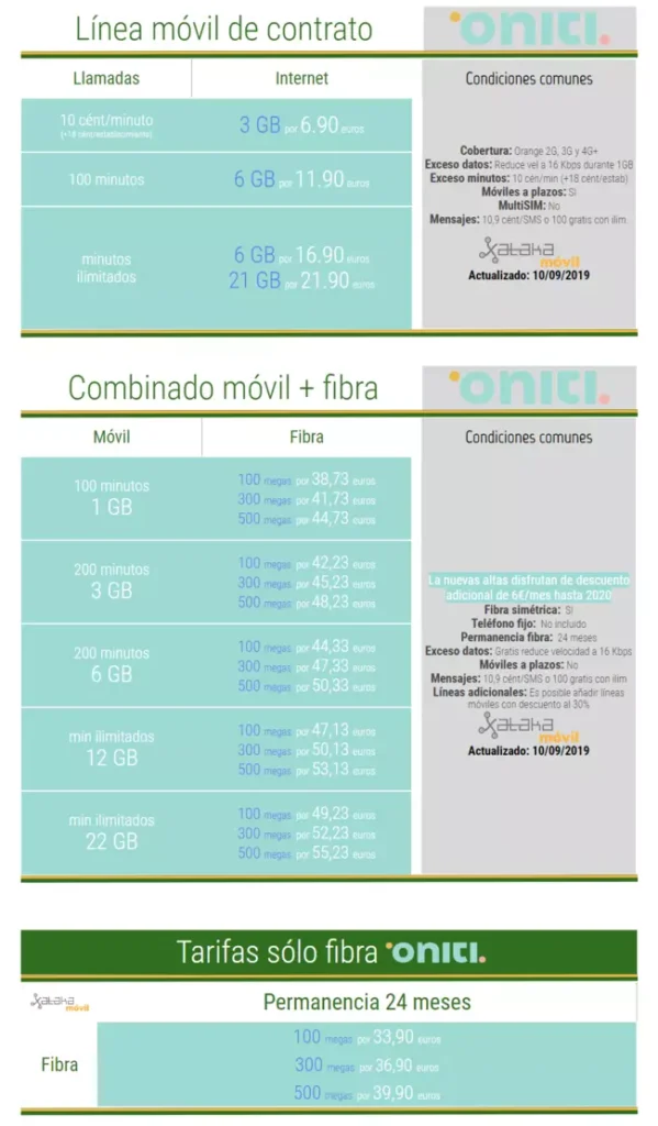 Tarifas de Oniti: Fibra, Móvil y Combinadas