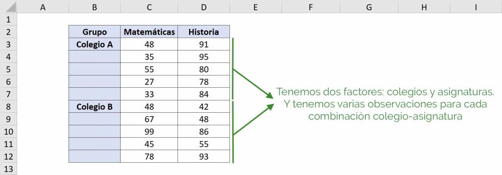 | ANOVA de medidas repetidas | Se mide lo mismo en diferentes condiciones. | Evaluar el rendimiento de estudiantes a lo largo de varios exámenes. |