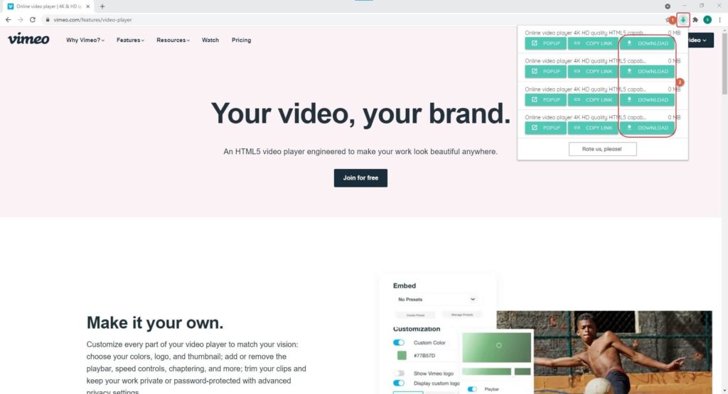 Una vez instalada y configurada, la extensión de navegador te permitirá descargar videos de Vimeo directamente desde la página del video. Busca el botón o menú de la extensión cerca del video y haz clic en él para ver las opciones de descarga disponibles. Selecciona el formato y la resolución que desees y haz clic en el botón de descarga. La extensión iniciará la descarga del video y lo guardará en la carpeta de tu elección. Algunas extensiones pueden ofrecer funciones adicionales, como la conversión de videos a diferentes formatos o la descarga de listas de reproducción completas. Sin embargo, ten en cuenta que algunas extensiones pueden mostrar publicidad o redirigirte a sitios web externos durante el proceso de descarga. Utiliza un bloqueador de publicidad para evitar anuncios intrusivos y verifica la URL antes de ingresar cualquier información personal o descargar archivos desde sitios web externos. En la siguiente sección, exploraremos la inspección del código fuente de la página como una alternativa más técnica para descargar videos de Vimeo sin instalar programas ni extensiones de navegador.